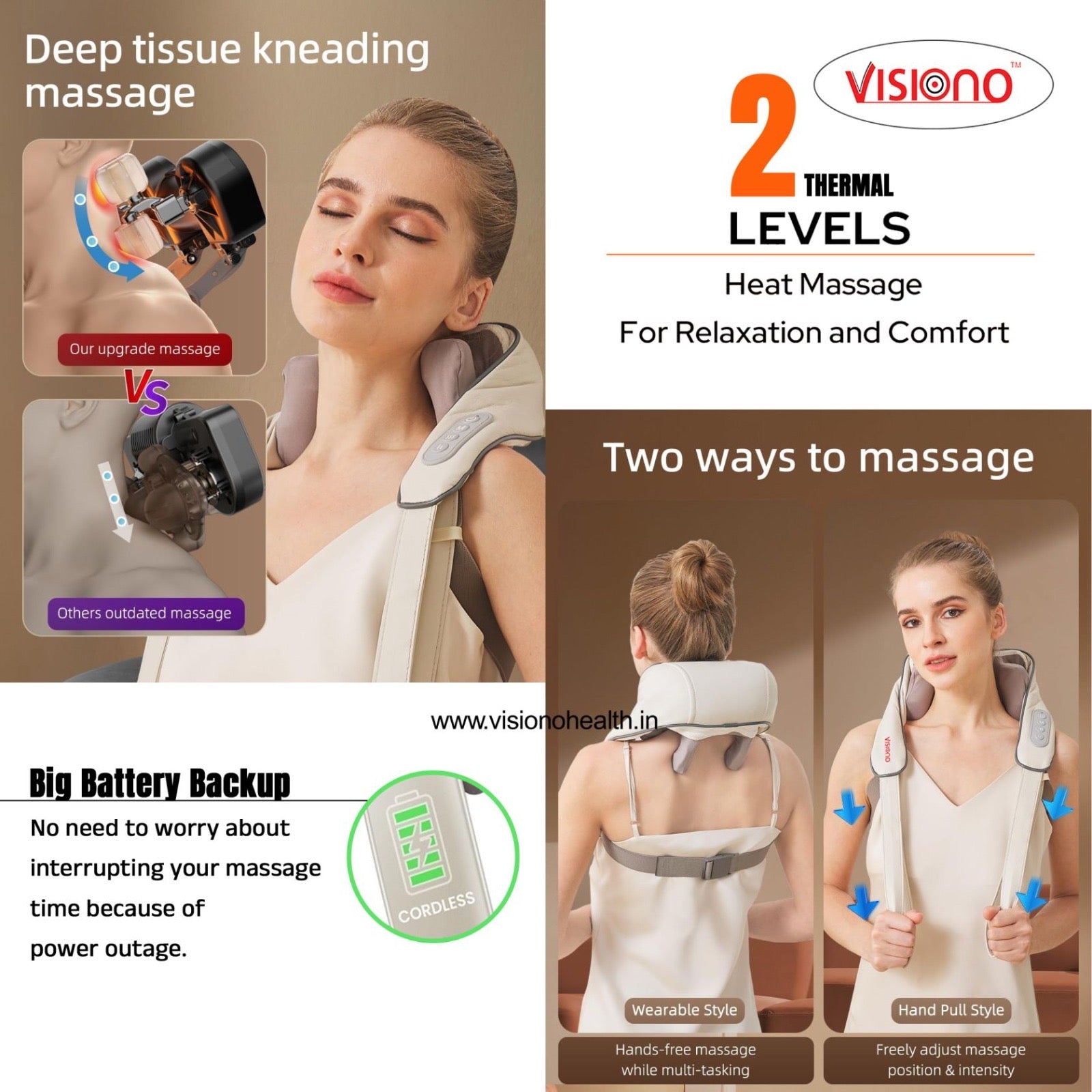 Experience comfort, relaxation, and better sleep with the Visiono Neck & Shoulder Massager – your daily solution for stress-free living. 🌿✨