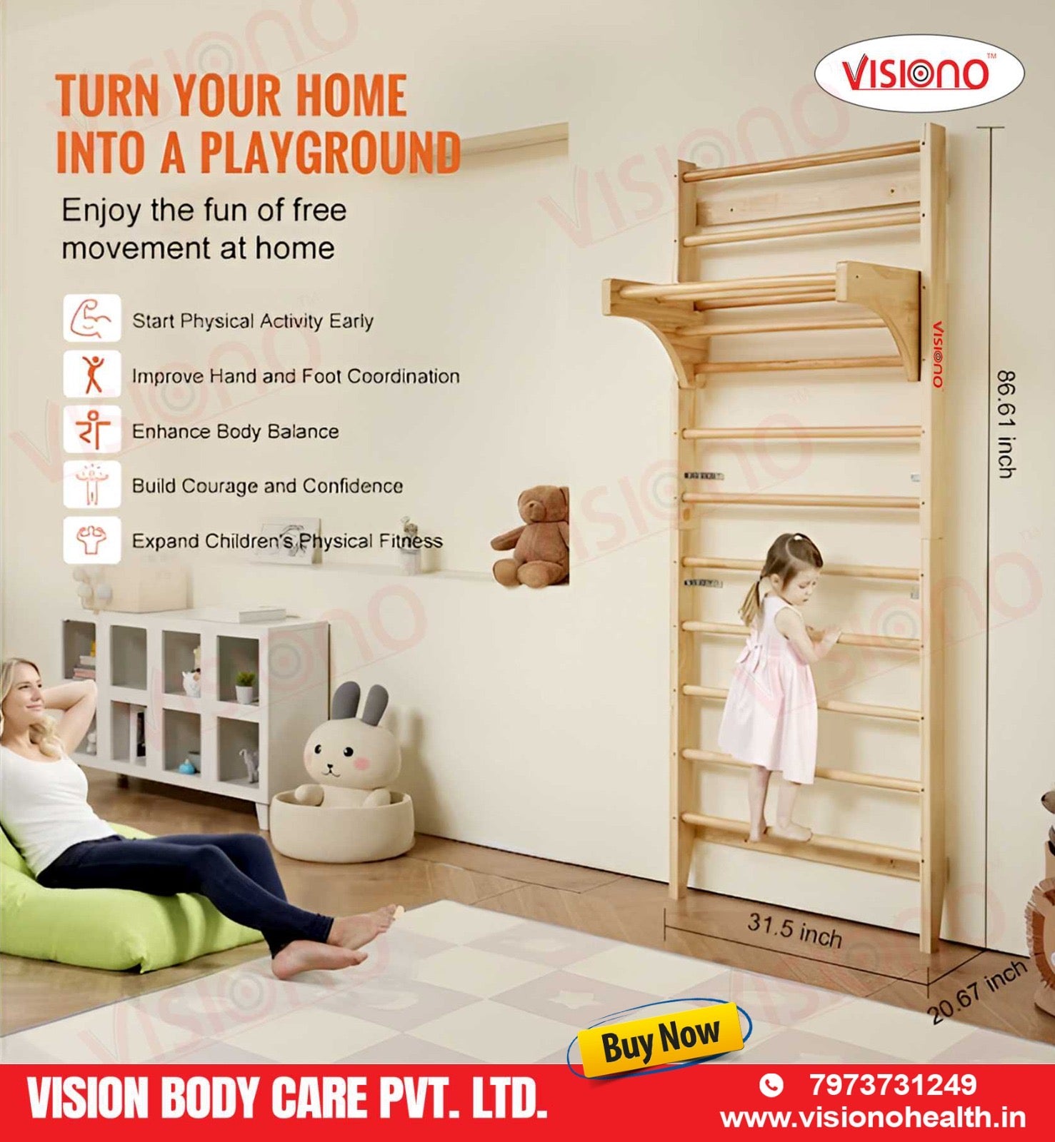 The Wooden Wall Bars are a versatile rehabilitation and fitness tool widely used in physiotherapy clinics, gyms, yoga studios, and home exercise spaces. Crafted from high-quality, durable wood, these wall-mounted bars provide excellent support for stretching, strengthening, posture correction, and mobility training.
